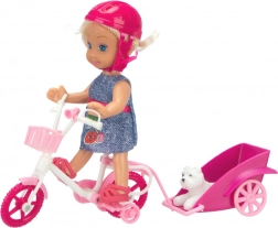 Naša sjajna igračka uključuje mini lutkicu visine 11 cm odjevenu u šarenu haljinicu s mašnom, spremnu za uzbudljivu vožnju biciklom. Psića možete povesti u prikolici, što igri daje autentičnost i potiče dječju kreativnost.