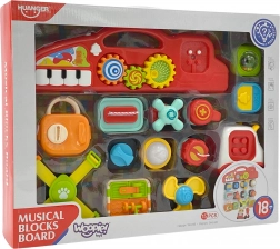 Panel se sastoji od raznolikih interaktivnih elemenata koji se mogu slobodno spajati i razdvajati, slično kao kocke. Dio paketa je također autić u obliku kocke, na koji se mogu priključiti elementi iz ploče. Na priključnim kockama nalaze se razni tipovi prekidača, gumbića, tipki, izvadivih maramica, brava s ključem i otvarajućih prozorčića. Ovi elementi razvijaju kod djeteta motoričke, kognitivne i senzoričke vještine te također vježbaju koordinaciju ruka-oko.