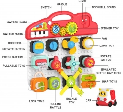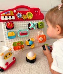 Šareni panel sadrži razne prekidače, gumbiće i tipke koji razvijaju motoričke vještine.
