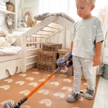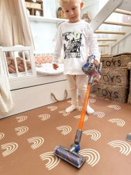 Ovaj interaktivni usisavač za djecu opremljen je izmjenjivim spremnikom za umjetni otpad koji se lako prazni. Izrađen je od visokokvalitetnih materijala sigurnih za djecu te ima udobnu ručku koja omogućuje djetetu da usisavač lako prenosi. Idealan je kao poklon koji pomaže djeci oponašati svoje roditelje, jer tko ne bi želio biti odrasla osoba?