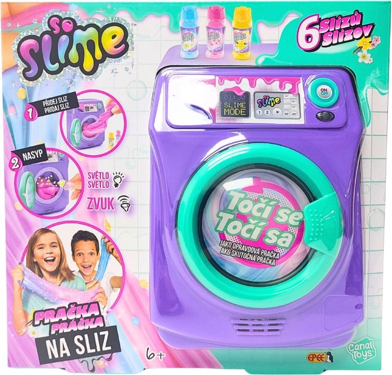 Otkrijte zabavnu izradu sluzi s igračkom SO SLIME mirisna perilica u ljubičasto–tirkiznoj boji. Djeca od 6 godina uživat će u svjetlosnim i zvučnim efektima, rotirajućem bubnju i prozirnim vratima za praćenje miješanja. U pakiranju se nalazi 6 vrećica sa sluzi, košarica, boca i 3 mirisne kuglice za čarobno mirisnu, šarenu sluz. Napajanje 3× AA (nisu uključene).