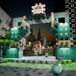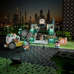 Uđite u užurbani Mini Waffle City, gdje napetosti ne nedostaje. Izgradite čvrstu banku s ojačanim zidovima, napunite sef sjajnim dijamantima i odlučite kako će priča završiti – hoće li lopovi Peter i Lu pobjeći ili će policajac Gary sve spriječiti? Figurica bankara Richarda poznaje svaki kutak zgrade, pa je igra još zabavnija.