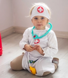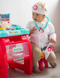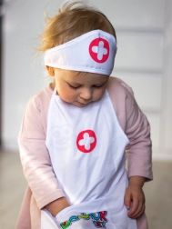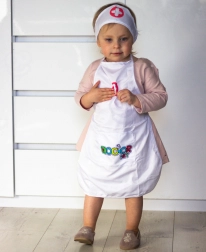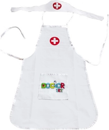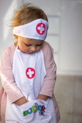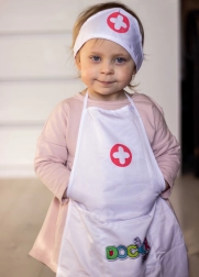 Lagana pregača s praktičnim džepovima prima stetoskop i ostale dječje pomagala kako bi igra doktora uvijek bila pri ruci.