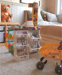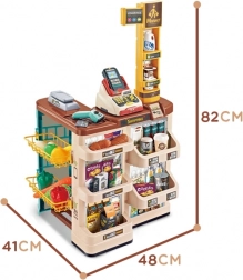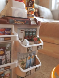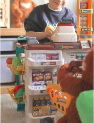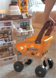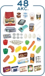 U kompletu su košara/kolica i mnogo namirnica poput voća, povrća, mlijeka i soka – sve za potpunu igru trgovine.