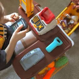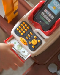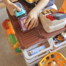 Blagajna s izvlačivom ladicom za novac, čitačem kartica i skenerom koji svijetli i reproducira zvuk pruža djeci autentičan doživljaj kupovine.