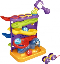 - 3u1 multifunkcija: staza za kuglice, whack-a-ball s čekićem, spust za autić.