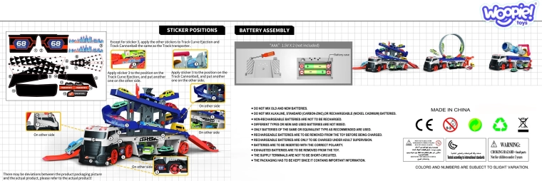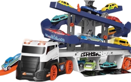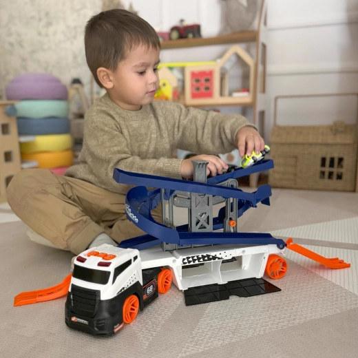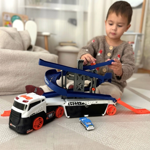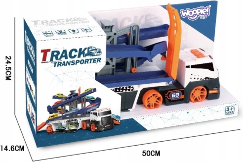 Interaktivni TIR brenda WOOPIE spaja autodrom, transporter i edukativne funkcije u jedan dinamičan set. Djeca uživaju u realističnim svjetlosnim i zvučnim efektima, dok na zabavan način otkrivaju engleska slova i brojeve. Otvarajuće bočne klapne i gornja parkirna površina s polazištima dodaju igri akciju i maštu.