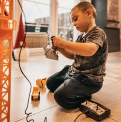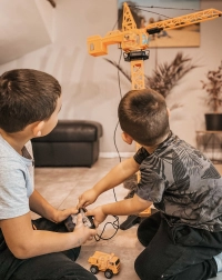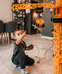 Velika dizalica WOOPIE donosi djeci realistično gradilište u njihovu sobu. Zahvaljujući daljinskom upravljanju, rukovanje je jednostavno i zabavno – dizalica se okreće, podizao, spušta i pomakne teret po kraku. Podesiva visina 103 ili 64 cm omogućuje prilagodbu igri prema prostoru i dobi djeteta.