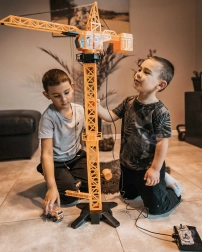Dizalica se u potpunosti okreće i omogućuje podizanje, spuštanje i pomicanje tereta po kraku – baš kao na pravom gradilištu. Sjajna zabava i vježba koordinacije.