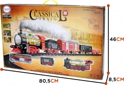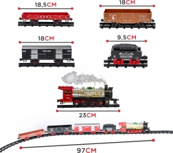 Set sadrži 29 elemenata: lokomotivu, vagon za ugljen i vagone, uz koje djeca mogu složiti vlastiti krug dimenzija 170 × 82 cm. Ukupna duljina kompozicije je oko 94 cm, duljina pruge 460 cm. Idealan poklon koji potiče razvoj mašte i manualnih vještina.