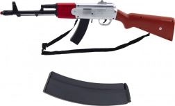 Igračka je opremljena uklonjivim spremnikom, što povećava realizam i omogućuje još maštovitiju igru. Drveni kundak i metalik detalji daju autentičan izgled. Priloženi remen za rame omogućuje udobno nošenje, što je idealno za tematske igre i inscenacije.