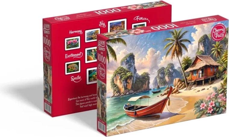 Uživajte u opuštanju i otkrivanju uz puzzle 'Tajlandski raj' od 1000 dijelova. Savršen poklon za ljubitelje slagalica i egzotičnih destinacija. Dimenzije nakon slaganja 70 x 50 cm.