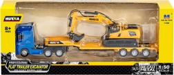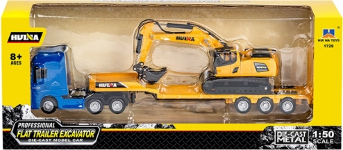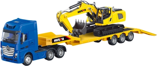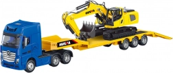 Ovaj vjerno izrađen set uključuje plavi tegljač s niskopodnom poluprikolicom i žuti bager koji zajedno simuliraju stvarni transport građevinske mehanizacije. Metalna konstrukcija u kombinaciji s ABS-om osigurava otpornost na oštećenja i dugotrajnost pri igri i izlaganju u kolekciji.