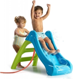 Prvi tobogan za najmlađe od 12 mjeseci nudi zabavu cijele godine – kod kuće i u vrtu. Zahvaljujući funkciji 2u1 može se priključiti vrtno crijevo i pretvoriti u vodeni tobogan idealan za vruće dane. Lagana, sklopiva, od izdržljive plastike s ANTI-UV zaštitom protiv blijeđenja boja, s visokim bočnim stijenkama i stabilnom bazom za sigurnu igru.