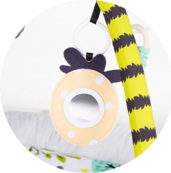 Interaktivna zona s plišanim igračkama, zvečkama i zrcalcem motivira bebu na pružanje ručica, hvatanje i praćenje, čime jača koordinaciju i vizualnu percepciju.