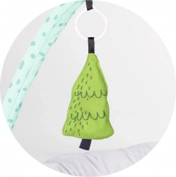 Otkrivajte čarobne šumske motive i nježne teksture koje potiču prirodnu znatiželju bebe. Igrališna podloga CHIPOLINO promjera 91 cm stvara ugodno i sigurno mjesto za prvo istraživanje, vježbanje na trbuščiću i igru na leđima i trbuhu. Dva stabilna luka nose pet visećih igračaka – zrcalce, zvečke i mekane plišane prijatelje – koje potiču na hvatanje i razvijaju finu motoriku.
