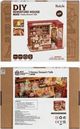 Sastavite vlastitu „Medenu slastičarnicu“ – realistično diorama-izdanje s vitrinama, policama i minijaturnim desertima koje će uljepšati svaki prostor. Precizno izrezani dijelovi sigurno se uklapaju bez ljepila, pa je slaganje čisto, zabavno i čvrsto. Integrirano LED osvjetljenje stvara ugodnu atmosferu i naglašava sve detalje izloga.