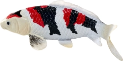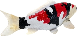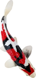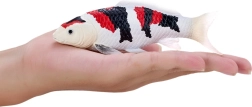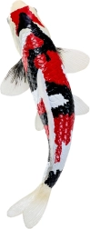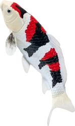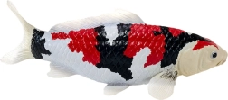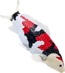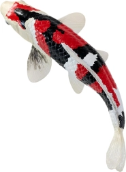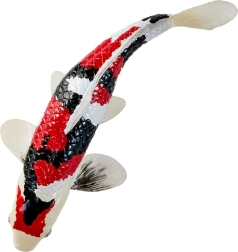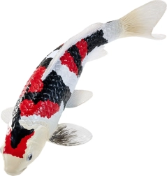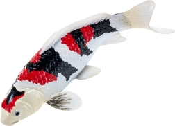 Tipična kombinacija bijele, crne i crvene vjerno oponaša prave koi Showa i naglašava detalje ljuski i peraja.