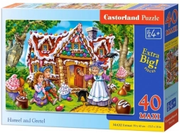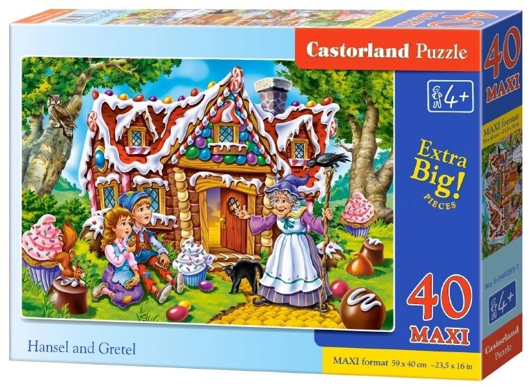 Ova velikoformatna slagalica s motivom bajke Hansel and Gretel idealna je za djecu od približno 4 godine. Zahvaljujući većim i čvrstim dijelovima djeci je lako rukovati njima, a slika brzo oživljava svojom jasnom i estetskom koloristikom.