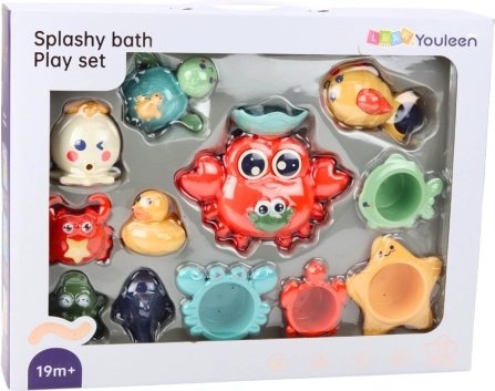 Uljepšajte kupanje svojoj djeci šarolikim setom za kadu koji uključuje raka, ribice, malenu kornjaču, kita i druge morske životinje. Igračke plutaju na vodi, mogu špricati vodu i zahvaljujući otvorima za prelijevanje potiču osjećaj za vodu, zabavu i učenje. Mekan i siguran materijal ugodan je na dodir i savršeno pristaje u male dječje ručice.