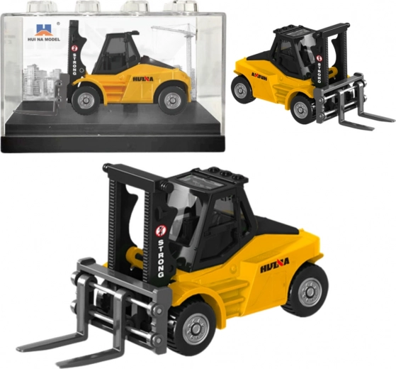 Otkrijte realističan mini model viljuškara HUINA u mjerilu 1:80. Zahvaljujući cjelokupnoj metalnoj izradi izdržljiv je i djeluje vrlo autentično, pa će postati atraktivan ukras police, radnog stola ili vitrine. Kompaktne dimenzije čine ga idealnim poklonom za djecu i odrasle ljubitelje industrijskih strojeva.