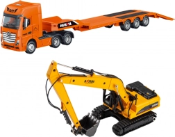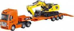 Set uključuje traktor s niskopodnom prikolicom i bagerom, što omogućuje više opcija igre i realističnu simulaciju prijevoza teških strojeva. Teretni kamion ima pokretne dijelove, a rampu se može spustiti za utovar i istovar vozila na način primjeren stvarnom transportnom radu.