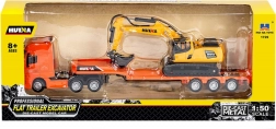 Model teretnog kamiona s niskopodnom prikolicom i bagerom je točna replika transportnog vozila namijenjenog za prijevoz teške građevinske opreme. Izrađen od kvalitetnog metala i izdržljive ABS plastike, ovaj model kombinira čvrstu konstrukciju, trajnost i preciznost.