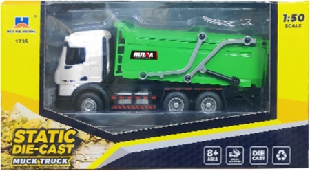 Metalni model kamiona za odvoz smeća Huina zeleni 1:50