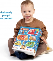U kompletu ćete pronaći razna poznata vozila – hitnu pomoć, taksi, komunalno vozilo za odvoz otpada, vatrogasce, vučnu službu, tramvaj i druga. Jedinstven element: dijelove s likovima moguće je između pojedinih slagalica slobodno premještati i tako stvarati nove priče i situacije.