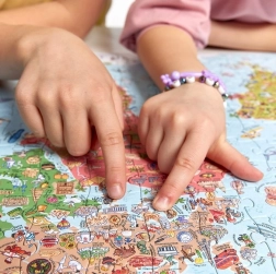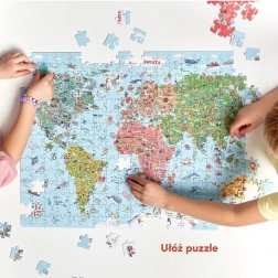 Istražujte svijet na zabavan način! Ove edukativne puzle s ilustracijom karte svijeta od 300 dijelova oduševit će djecu i odrasle. Velika, šarena i detaljna slika s više od 600 zanimljivosti potiče znatiželju, učenje kroz igru i zajedničko provedeno vrijeme. Sjajno kao obiteljske puzle, poklon za predškolce i školarce te originalna dekoracija za sobu nakon uokvirivanja.