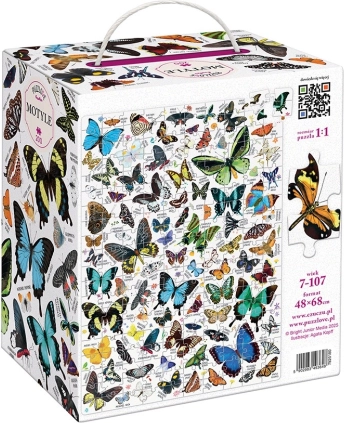 Otkrijte svijet prekrasnih leptira s puzzlama Puzzlove od 200 dijelova. Šareni i egzotični, ali i uobičajeni leptiri iz cijelog svijeta nakon slaganja stvaraju veliku sliku 48 × 68 cm. Idealan izbor za stariju djecu i obiteljsko slaganje – zabava, opuštanje i vježba koncentracije u jednom.