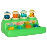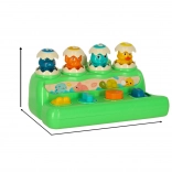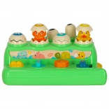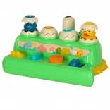 Ova interaktivna igra koja osigurava zabavu kombinira elemente spretnosti, obrazovanja i pokreta. Zadatak djeteta je najprije pritisnuti posebno dugme koje uzrokuje da jedna životinjica iskoči, a zatim je zabiti nazad čekićem. Djeca se tako ne samo zabavljaju, već i uče strpljenju i koncentraciji.