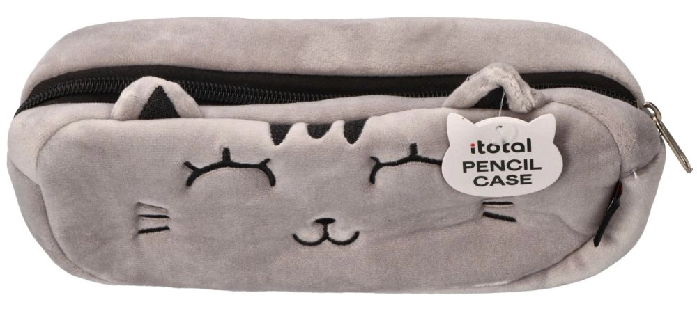 Ova siva plišana pernica s motivom mačke ističe se mekim materijalom, vezenim detaljima i preslatkim ušima. Zahvaljujući kompaktnim dimenzijama lako stane u školsku torbu, a pouzdan patentni zatvarač sigurnije drži vaš pribor za pisanje na okupu.