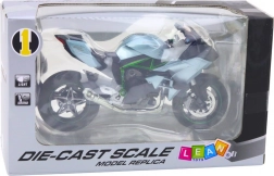 Stilizan sportski motocikl u srebrnom izdanju pažljivo je izrađen model koji se ističe detaljnim dizajnom i čvrstom metalnom konstrukcijom. Zahvaljujući svjetlu i zvuku na AG13 baterije djeluje iznimno realistično i odličan je poklon za male i velike ljubitelje dva kotača.