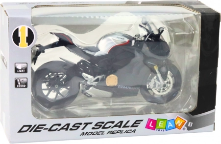 Realistični metalni model sportskog motocikla u mjerilu 1:12 oduševit će kolekcionare i djecu. Nudi svjetlosne i zvučne efekte, okretna kola, upravljiva upravljača i opružno ovjesenje. Čvrsta izrada od metala s plastičnim detaljima i elegantnim crnim dizajnom nadahnutim trkaćim strojevima donosi autentičan doživljaj igre i odličan dodatak na polici.