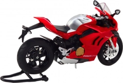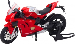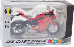 Realističan metalni model sportskog motocikla u mjerilu 1:12 oduševit će kolekcionare i djecu. Nudi precizne detalje, metalnu konstrukciju, svjetlosne i zvučne efekte te funkcionalne elemente kao što su okretno upravljanje, opružno ovjesenje i slobodno rotirajući kotači. Crveni trkaći dizajn daje modelu autentičan izgled.