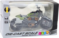Realistični metalni model choppera u mjerilu 1:12 oduševit će kolekcionare i ljubitelje motora. Nudi detaljnu izradu, metalnu konstrukciju s izdržljivim plastičnim dijelovima, svjetlosne i zvučne efekte, okretne kotače, upravljiva “ručica”/volan i oprugama amortizirano ovjesenje. Elegantni crni dizajn sa zelenim akcentima odlično izgleda na polici, stolu ili u vitrini.