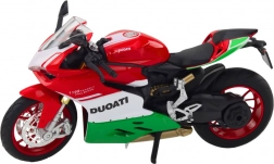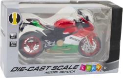 Precizno izrađen metalni model sportskog motocikla idealan je izbor za kolekcionare, ljubitelje motorizma i djecu koja vole dinamična vozila. S pokretnim upravljačem, ovjesom i okretajućim kolima ovaj model donosi autentičan osjećaj vožnje i manevriranja. Sa svojim crveno-bijelo-zelenim dizajnom, inspiriranim talijanskim trkaćim motociklima, prikladan je ne samo kao igračka, već i kao stilska dekoracija.
