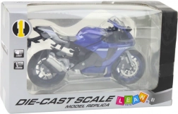 Ovaj metalni sportski motocikl opremljen je svjetlosnim i zvučnim efektima, aktivira se pomoću 3x AG13 baterija (uključene u pakiranju). Dinamičan sportski dizajn u plavoj boji inspiriran je klasičnim trkaćim motociklima, što modelu daje autentičan karakter.