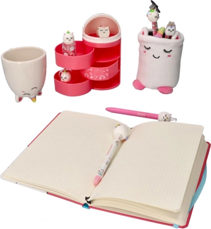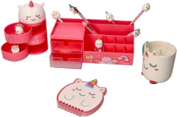 Dizajn u nježnim ružičastim tonovima s nasmijanim jednorogom razveselit će i djecu i odrasle. Organizer je sjajna ideja za originalan poklon i praktičan dodatak za svakodnevnu organizaciju.