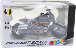 Stilski metalni model choppera u mjerilu 1:12 oduševit će kolekcionare i ljubitelje motora. Nudi preciznu izradu detalja, kombinaciju metala i izdržljive plastike te atraktivan crni dizajn sa zlatnim akcentima. Za veći doživljaj ima svjetlosne i zvučne efekte, okretna kola, upravljiva upravljača i elastično ovjesenje.