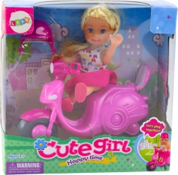 Lutkica visine 11 cm ima dugu plavu kosu i sladak outfitić. Skuter je izrađen od izdržljive plastike, opremljen pokretnim kotačima i retrovizorima. Dio seta je i ružičasta kaciga koja osigurava sigurnost tijekom vožnje i dodaje dozu realističnosti.