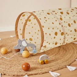 Samorozvijajući igraći tunel Bieco je idealan dodatak za dječju igru, pružajući savršen prostor za provlačenje i skrivanje. Izrađen od izdržljivog poliestera, tunel je lako periv i dolazi u toplim karamel tonovima koji dodaju udobnost svakoj dječjoj sobi.