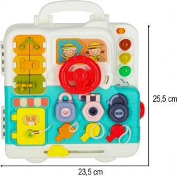 Poboljšajte vještine svog djeteta ovom Montessori osjetilnom pločom koja spaja zabavu i učenje u praktičnom formatu kofera. Ploča je dizajnirana tako da stimulira djetetova osjetila te potiče finu motoriku i logičko razmišljanje.