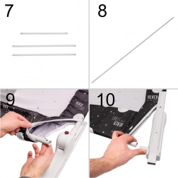 Instalacija traje svega nekoliko minuta – nožice jednostavno gurnete ispod madraca, a okvir umetnete u tekstilnu navlaku s mrežicom. Stabilno pričvršćivanje bez oštećenja kreveta.