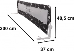 Duljina 200 cm i zaštitni dio 195 cm pružaju veliku površinu sigurnosti. Izdržljivi materijali – metal, plastika i poliester – osiguravaju stabilnost svake noći.