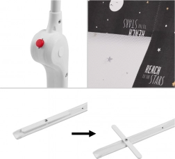 Bočne tipke omogućuju brzo preklapanje ograde, tako da ne smeta pri lijeganju ni ustajanju. Nakon sklapanja visina je približno 49 cm.
