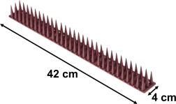 Plastični šiljci protiv ptica predstavljaju učinkovito i humano rješenje za zaštitu prozorskih dasaka, vijenaca, ograda i balkona. Gusta raspodjela šiljaka onemogućuje pticama sigurno slijetanje, čime se smanjuje nered i rizik od oštećenja. Smeđa boja djeluje nenametljivo i ne narušava izgled fasade.