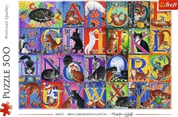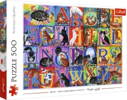 Otkrijte zabavnu slagalicu s motivom mačje abecede od 500 dijelova, koja stvara šarenu kolažnu kompoziciju slova i razigranih mačića. Gotova slika ima dimenzije 48 × 34 cm. Proizvedeno u Poljskoj od kvalitetnih materijala s naglaskom na zaštitu okoliša i opremljeno kalandriranim papirom za manje odsjaje i ugodnije slaganje.