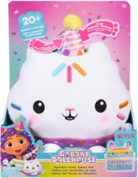 Uđite u svijet mašte s mačkicom Tortom iz Gabinog čarobnog doma. Interaktivni plišanac u blistavom party outfitu reagira na pokret i dodir: okrenite ga naglavačke za luckasti način, protresite za party način i pritisnite gumb na šeširu kako biste aktivirali govor i zvukove. Mekana izrada i prijateljski izraz čine ga preslatkim pratiteljem za svaki dan.